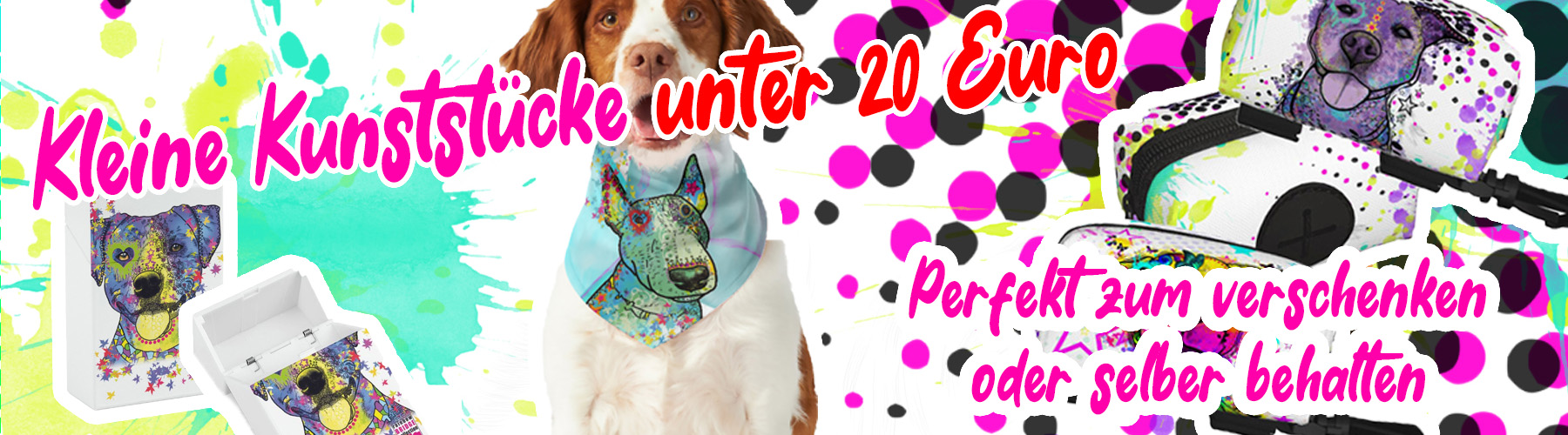 Verleihe Deinem Hund mit diesem bunten Bandana im Popart-Stil Farbe und Stil. Bequem, pflegeleicht und das perfekte Geschenk für Hundeliebhaber.