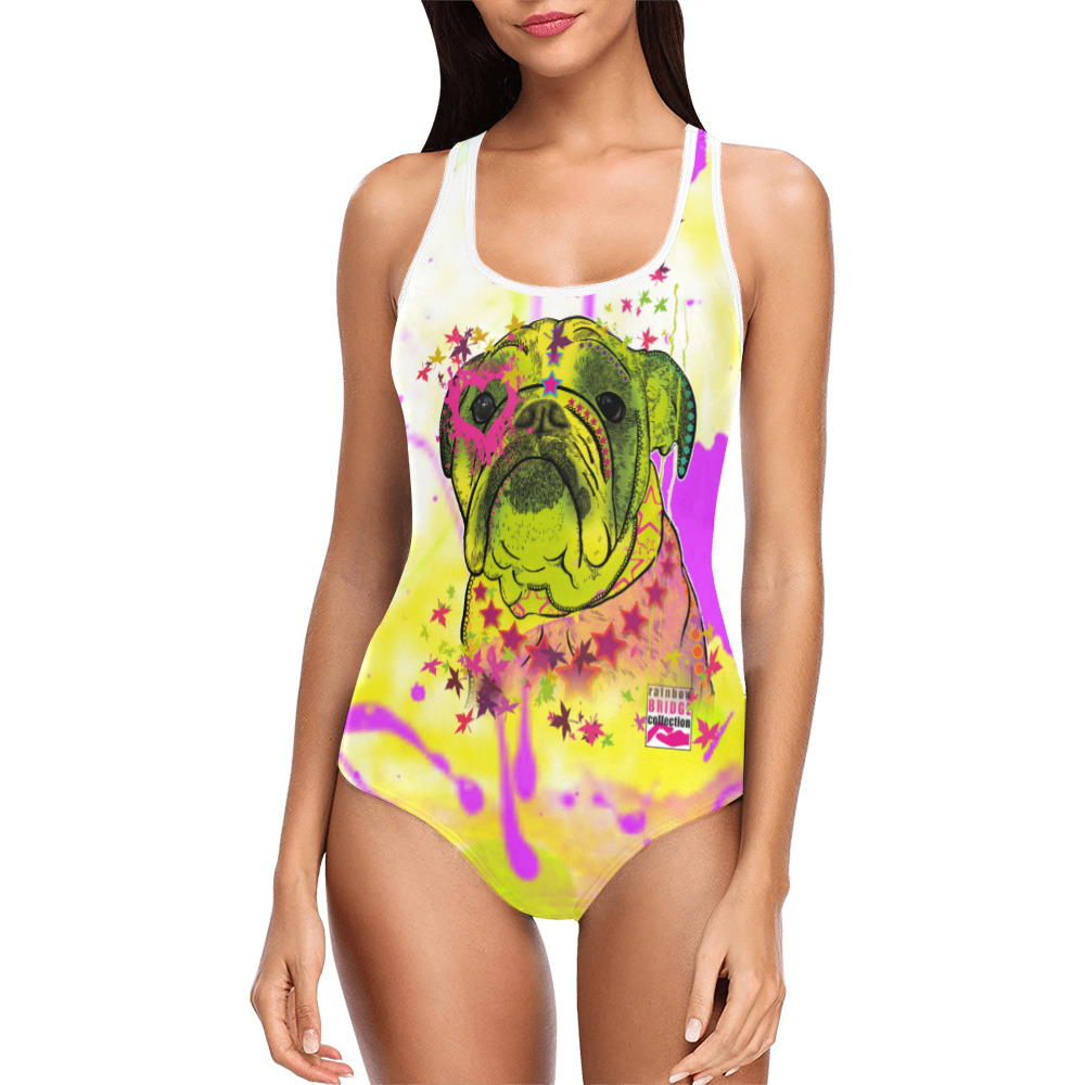 Badeanzug Hundemotiv Cindy - 85% Polyester, 15% Spandex, Wasserecht, mit Innenfutter, Größe XS-5XL, Bademode, Englische Bulldogge, English Bulldog, Bully, SOKA, Listenhund