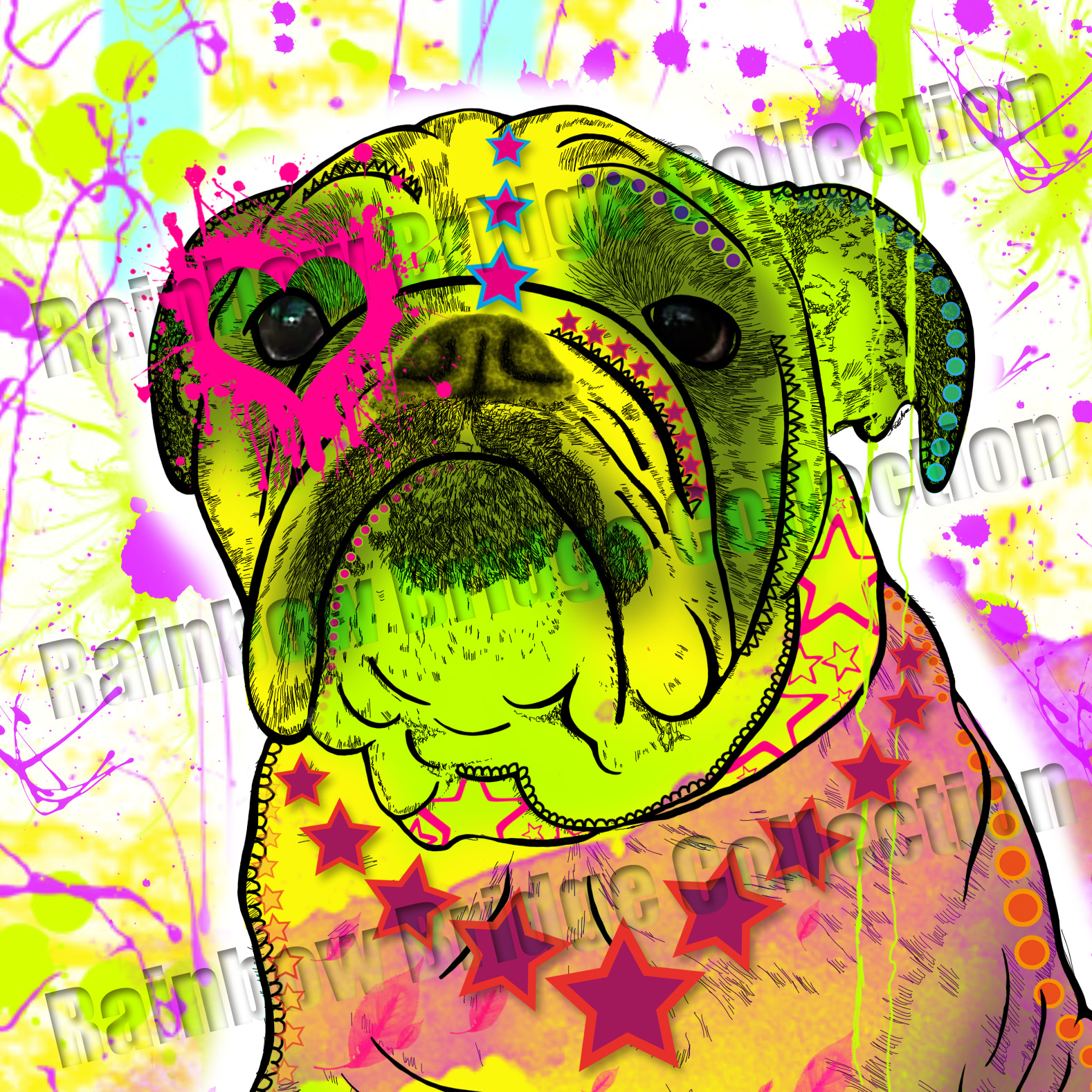 Bist du bereit für einen echten Hingucker? Dieses knallbunte Kunstwerk zeigt Cindy, die süße englische Bulldogge, in einer stylischen Popart-Optik mit dicken Outlines – perfekt, um deinem Zuhause einen fröhlichen Farbtupfer zu verleihen! Ob im Wohnzimmer, Büro oder Hundeliebhaber-Zimmer – Cindy bringt garantiert gute Laune und einen Hauch von Kunst in deinen Alltag.