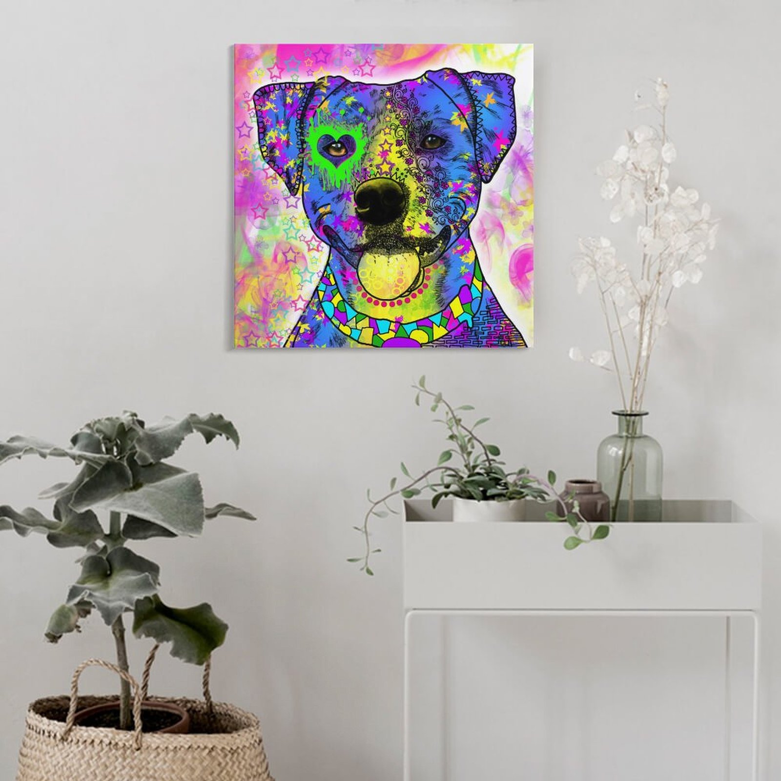 Bist du bereit für einen echten Hingucker? Dieses Kunstwerk zeigt die süße Tayra, eine American Staffordshire Terrier Mix Hündin, in einer stylischen Popart-Optik mit dicken Outlines – perfekt, um deinem Zuhause einen fröhlichen Farbtupfer zu verleihen! Ob im Wohnzimmer, Büro oder Hundeliebhaber-Zimmer – Tayra bringt garantiert gute Laune und einen Hauch von Kunst in deinen Alltag.