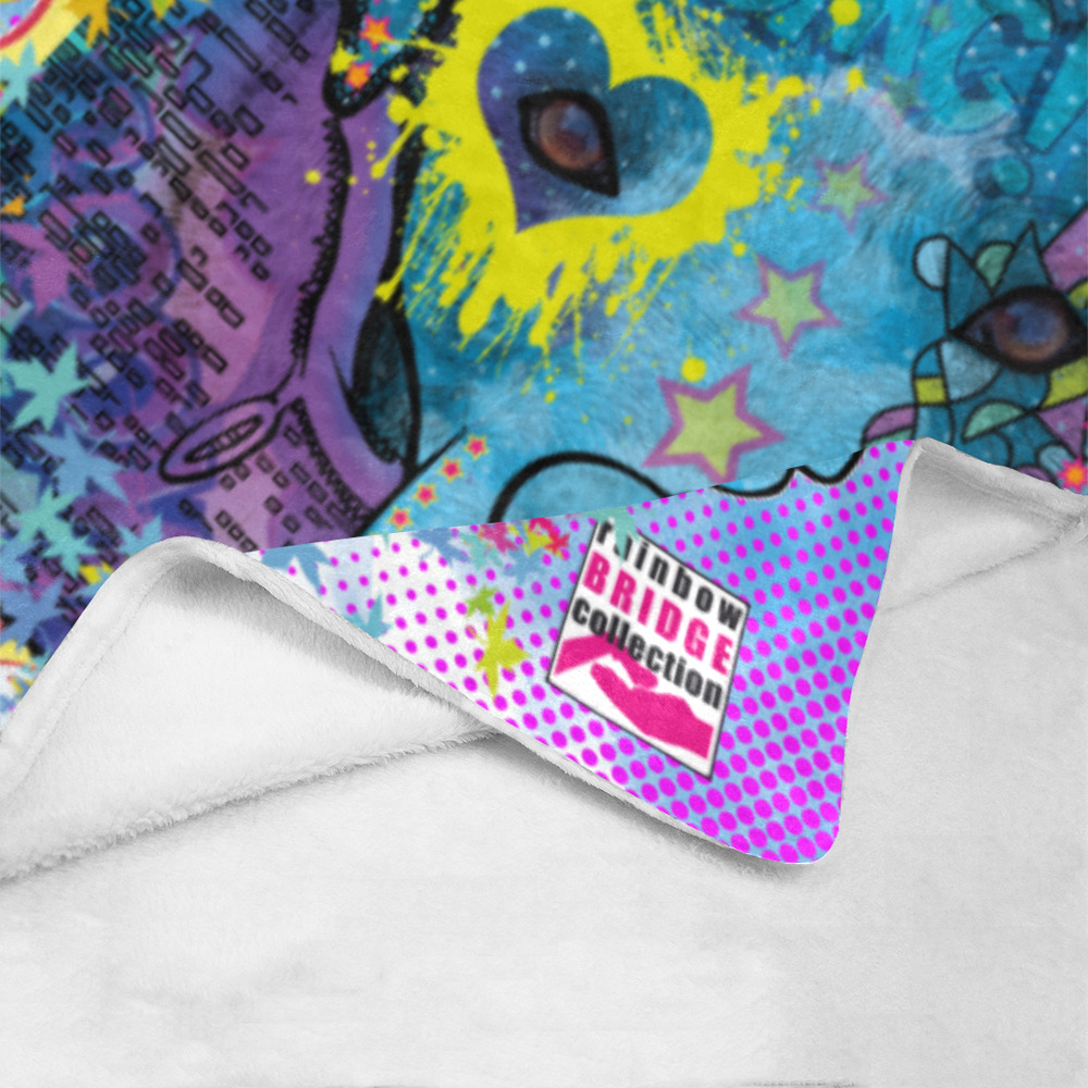 Preview: Decke Boogie -  Fleecedecke, kuschlig, weich, bunt, Motive in Digitaler Popart, 152cm x 203cm, bunt, Staff, Amstaff, Staffordshire, Soka, Listenhund, Bollerkopf, Mix