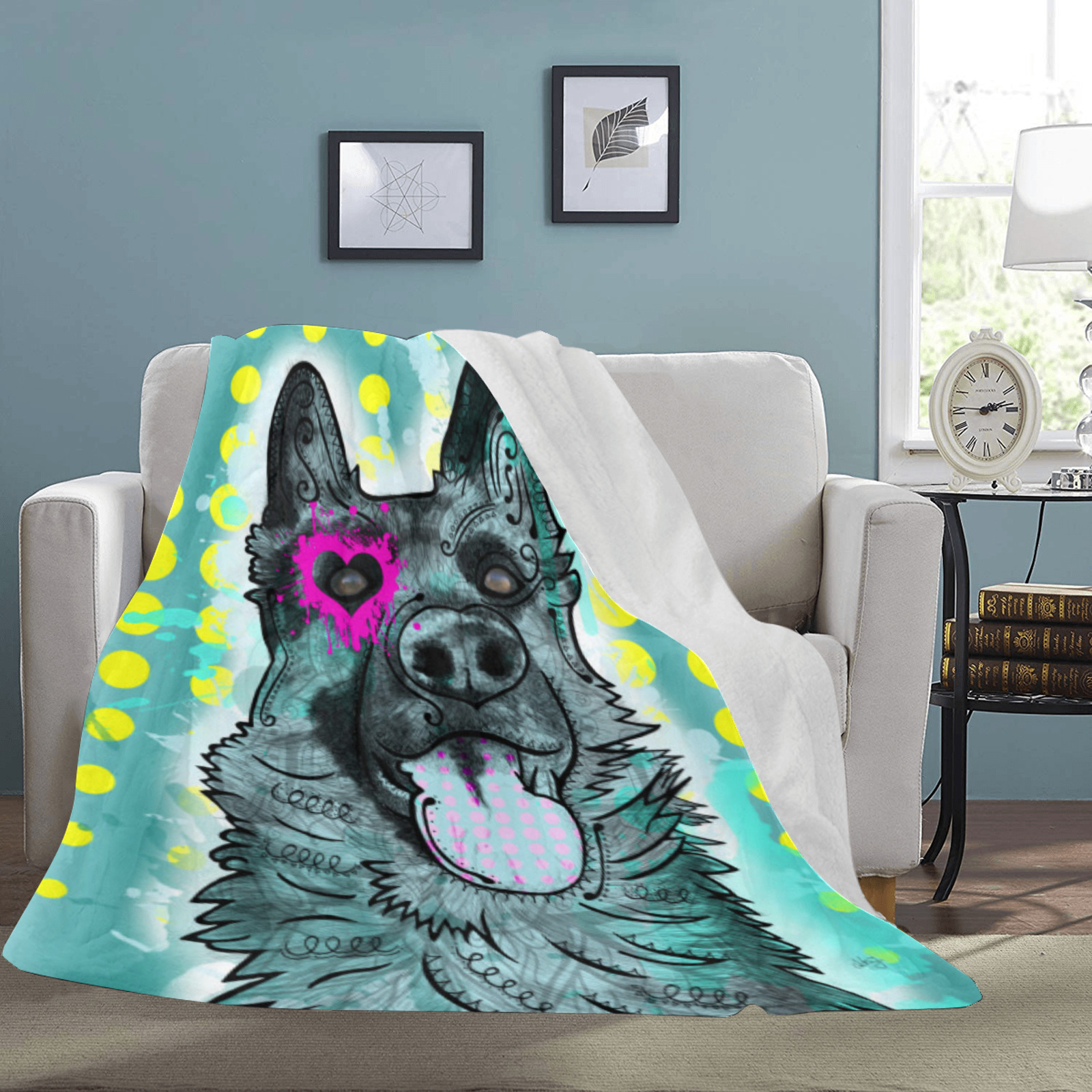 Preview: Decke Eddy -  Fleecedecke, kuschlig, weich, bunt, Motive in Digitaler Popart, 152cm x 203cm, bunt, Deutscher Schäferhund, German Shepherd, Schäfi, Mix