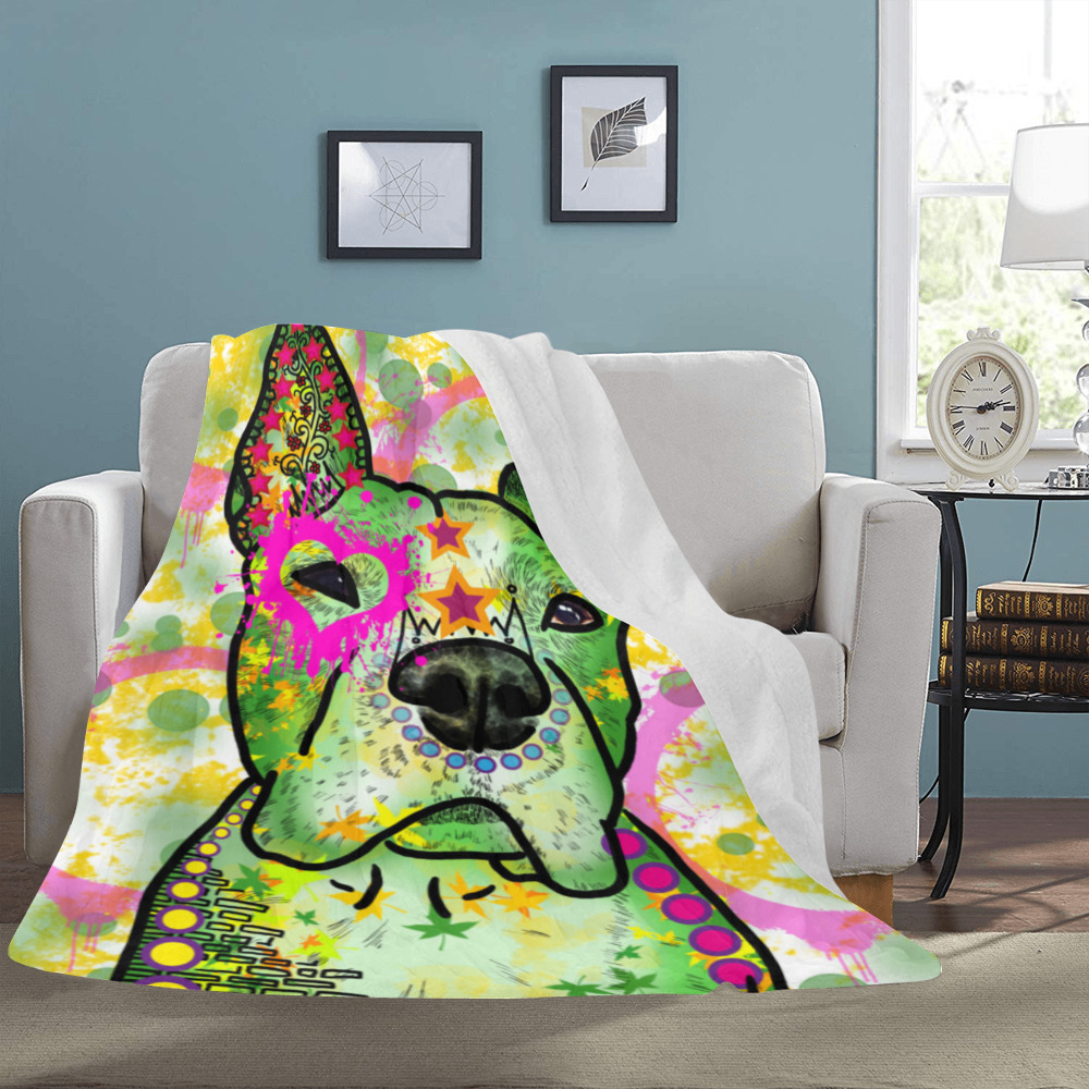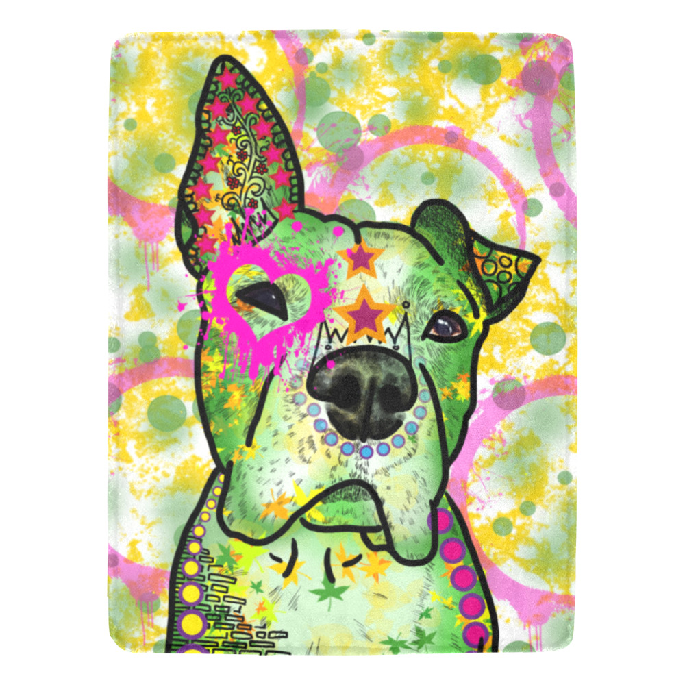Preview: Decke Tyson -  Fleecedecke, kuschlig, weich, bunt, Motive in Digitaler Popart, 152cm x 203cm, bunt, Staff, Amstaff, Staffordshire, Soka, Listenhund, Bollerkopf, Mix