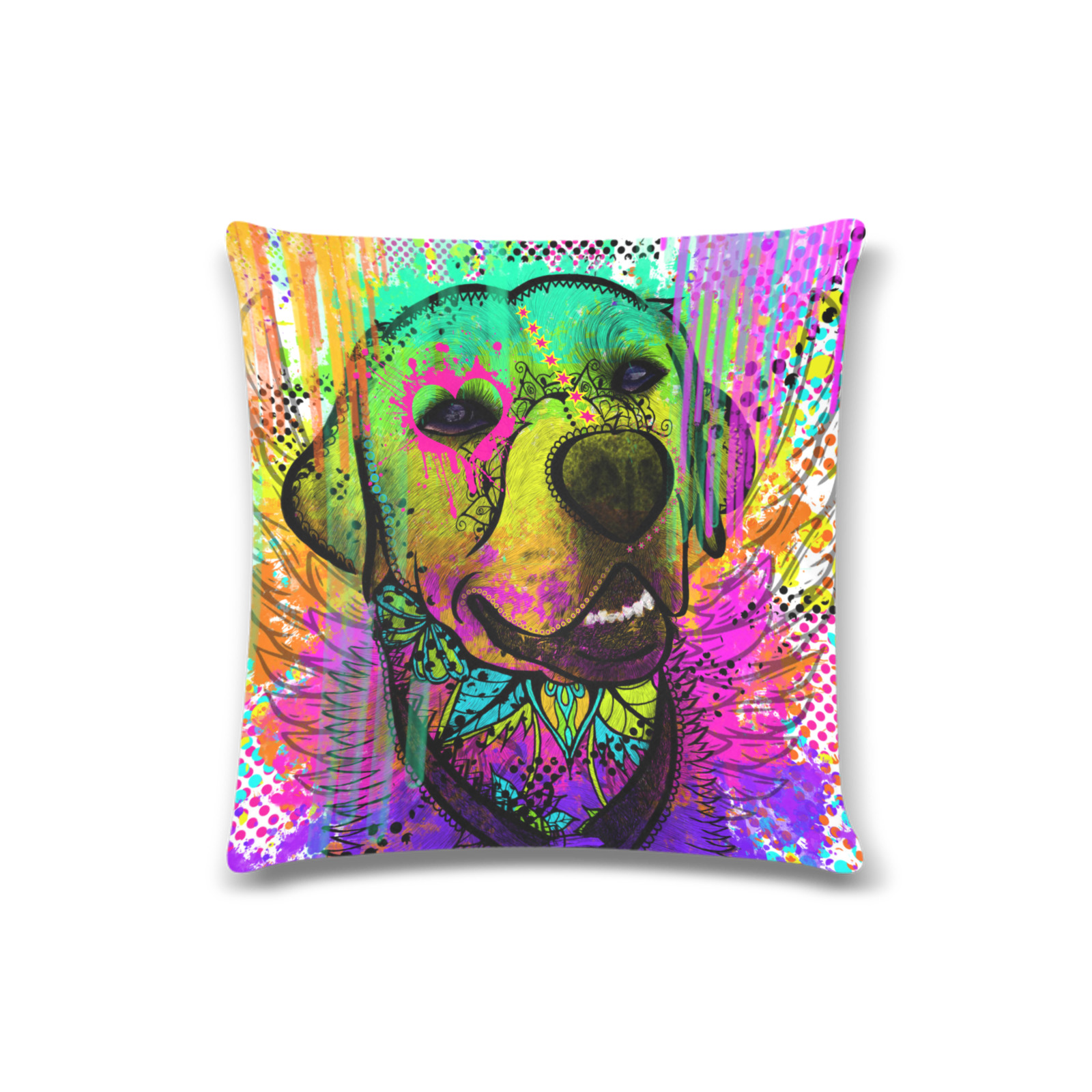 Sofakissen-Bezug Leo- Popart Hundeporträt, 50x50 cm, Baumwolle & Polyester, beidseitig bedruckt, waschbar