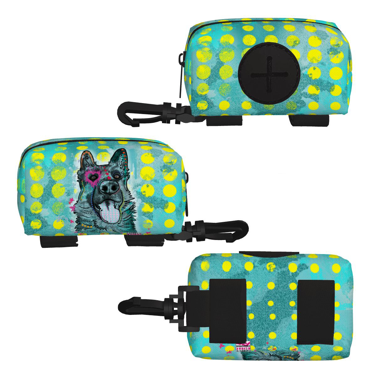 Preview: Kack & Pack mit Hundemotiv Eddy - Hundekottütentasche, Hundekotbeutelhalter, bunt, Polyster, Mischling, Mix, Deutscher Schäferhunde