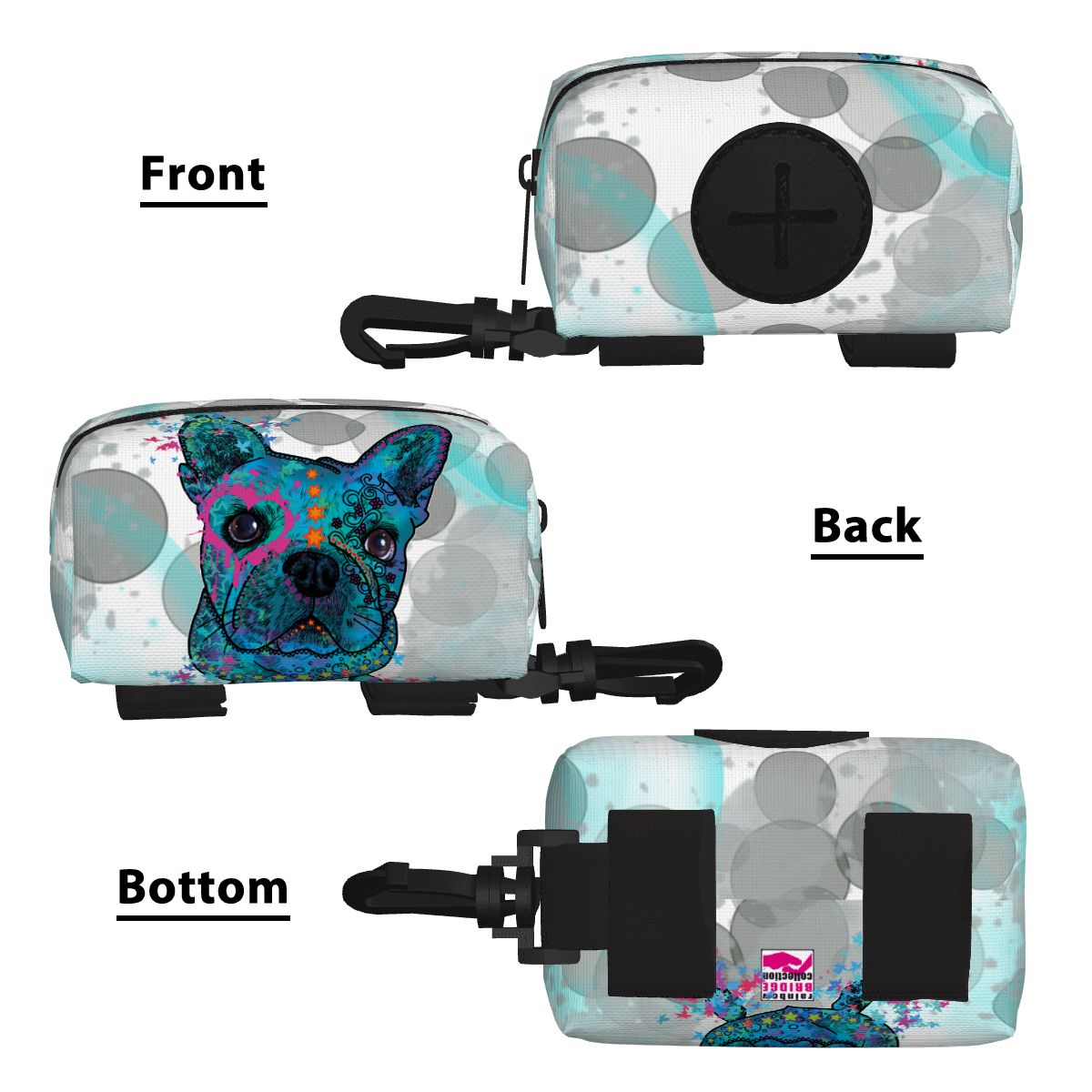 Preview: Kack & Pack mit Hundemotiv Elli - Hundekottütentasche, Hundekotbeutelhalter, bunt, Polyster, Mischling, Mix, Französische Bulldogge, Bulli, Frenchi
