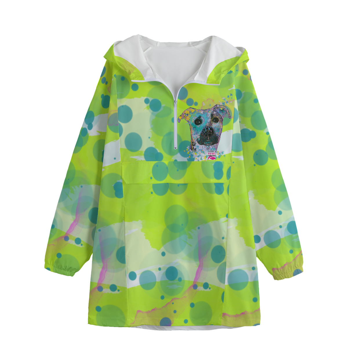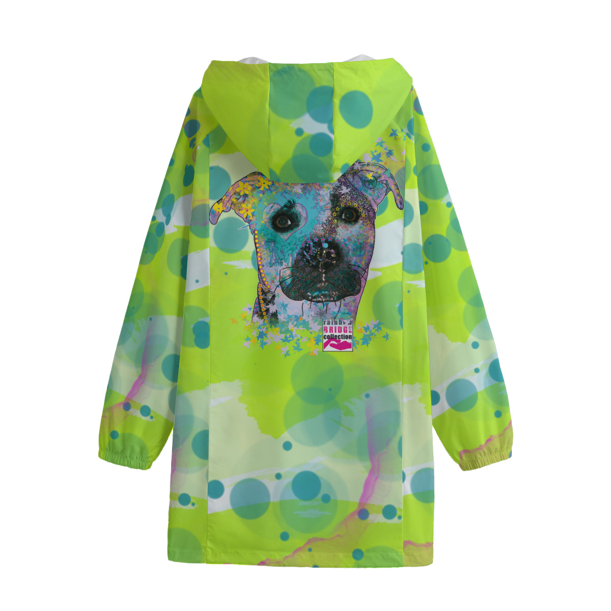 Preview: Leichte Regenjacke Mojito – Popart Hundemotiv, 100 % Polyester, Unisex, Staffordshire, AmStaff, Staff, Pitbull, Pit, SOKA, Listenhund