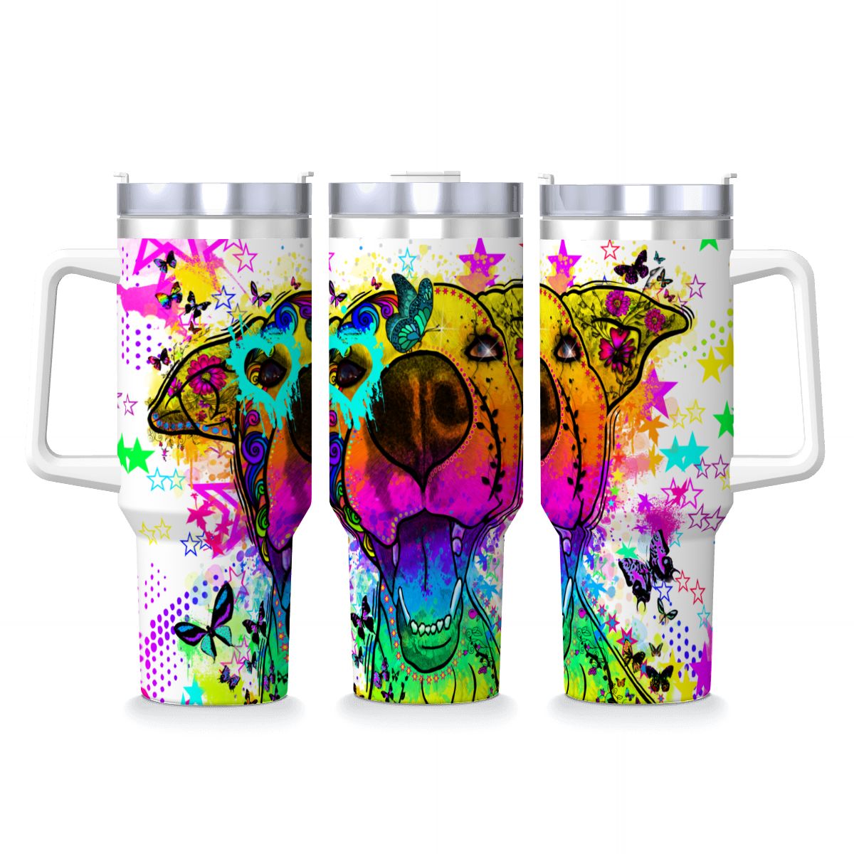 Tumbler mit Hundemotiv Hazel - Edelstahl, Becher, 1L, mit Strohhalm, bunt, Motive in Digitaler Popart, Mischling, Mix, AmStaff, Staffordshire, SOKA, Listenhund