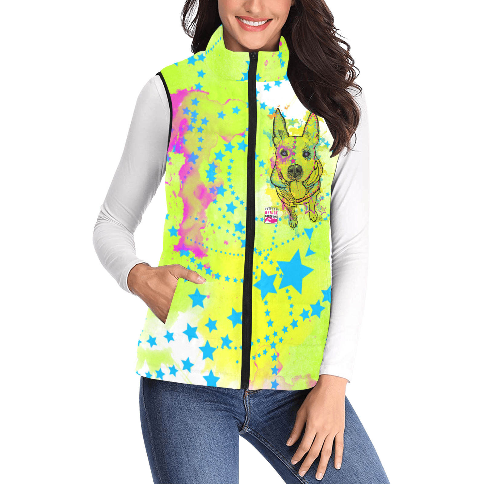 Weste mit Hundemotiv Amy3 - 100 % Polyester, Wattiertes Futter, Ärmellos, bunt, Hundemotiv, AmStaff, Staff, Staffordshire, Pitbull, Pit