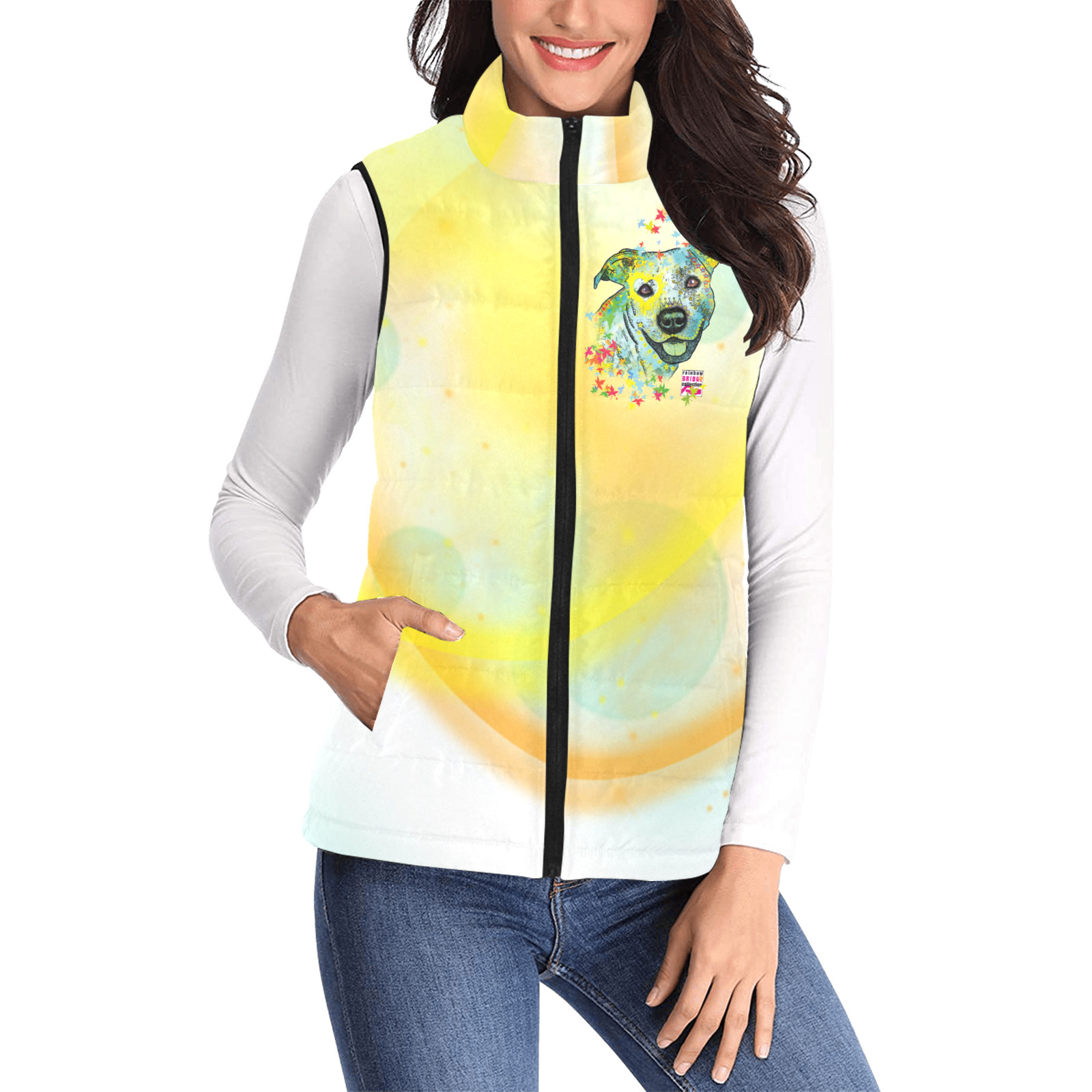 Weste mit Hundemotiv Kiki - 100 % Polyester, Wattiertes Futter, Ärmellos, bunt, Hundemotiv, AmStaff, Staff, Staffordshire, Pitbull, Pit