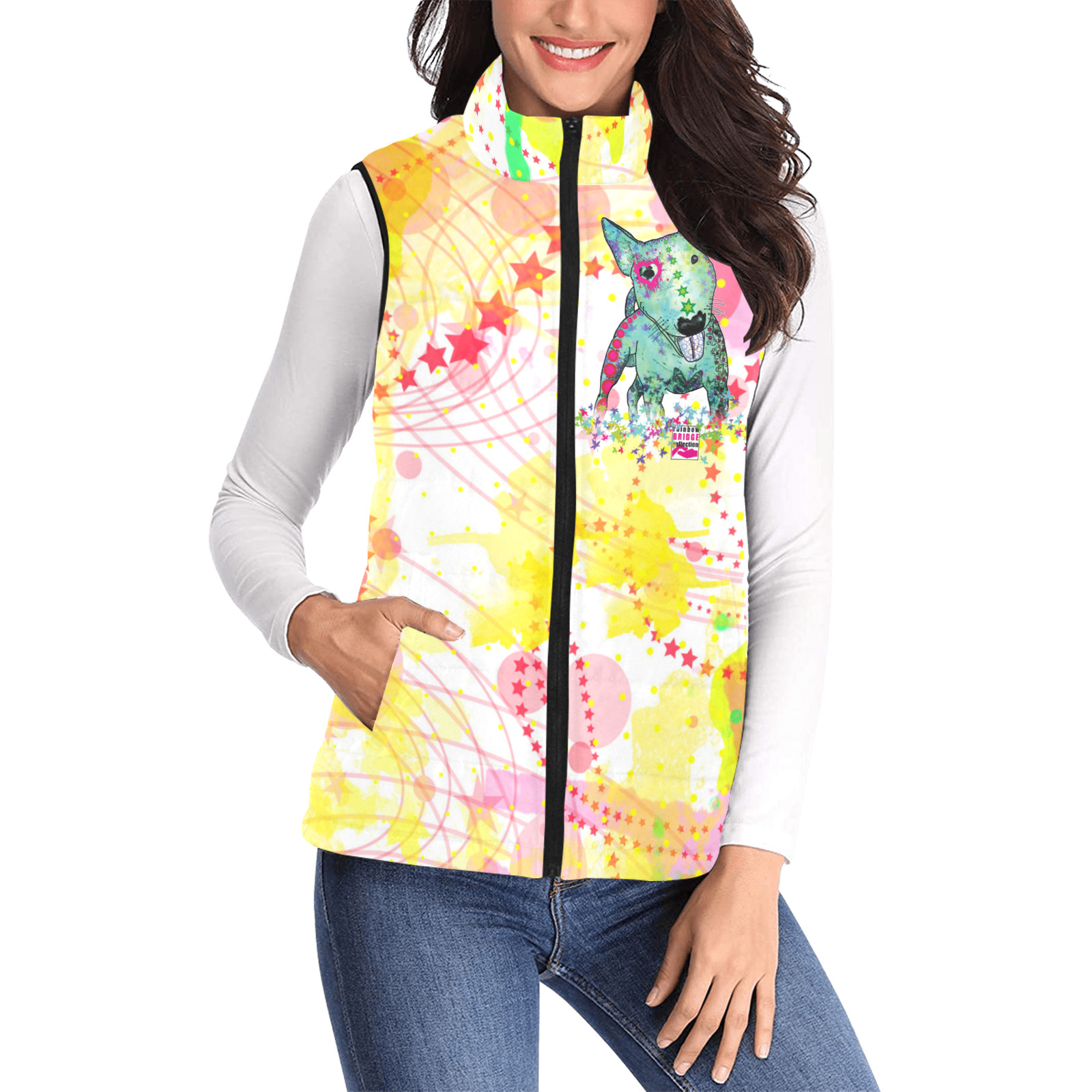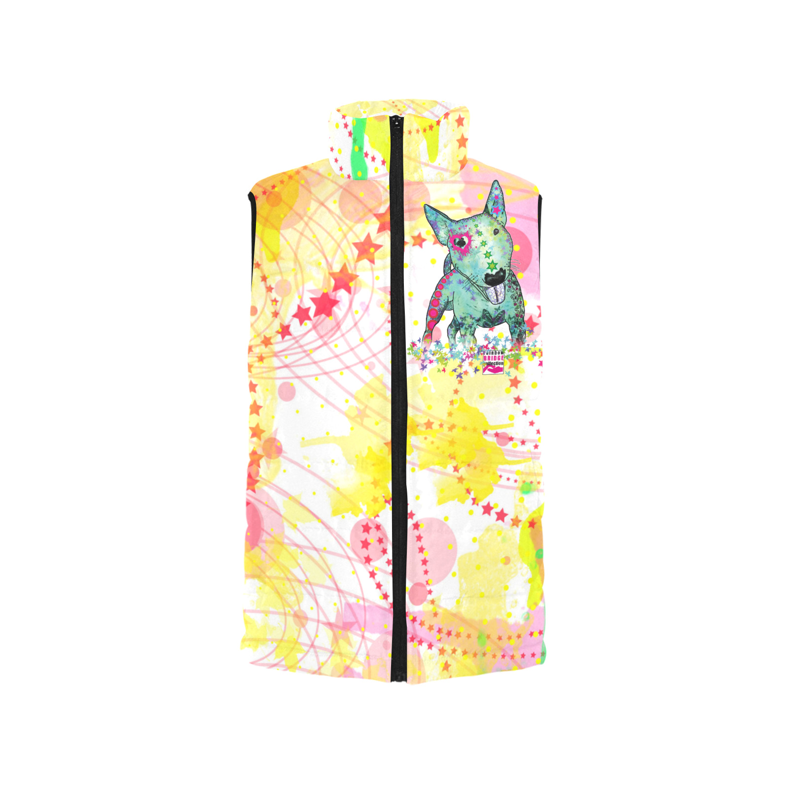 Weste mit Hundemotiv Paul - 100 % Polyester, Wattiertes Futter, Ärmellos, bunt, Hundemotiv, Mini, Bullterrier, Bulli, Listenhund, SOKA