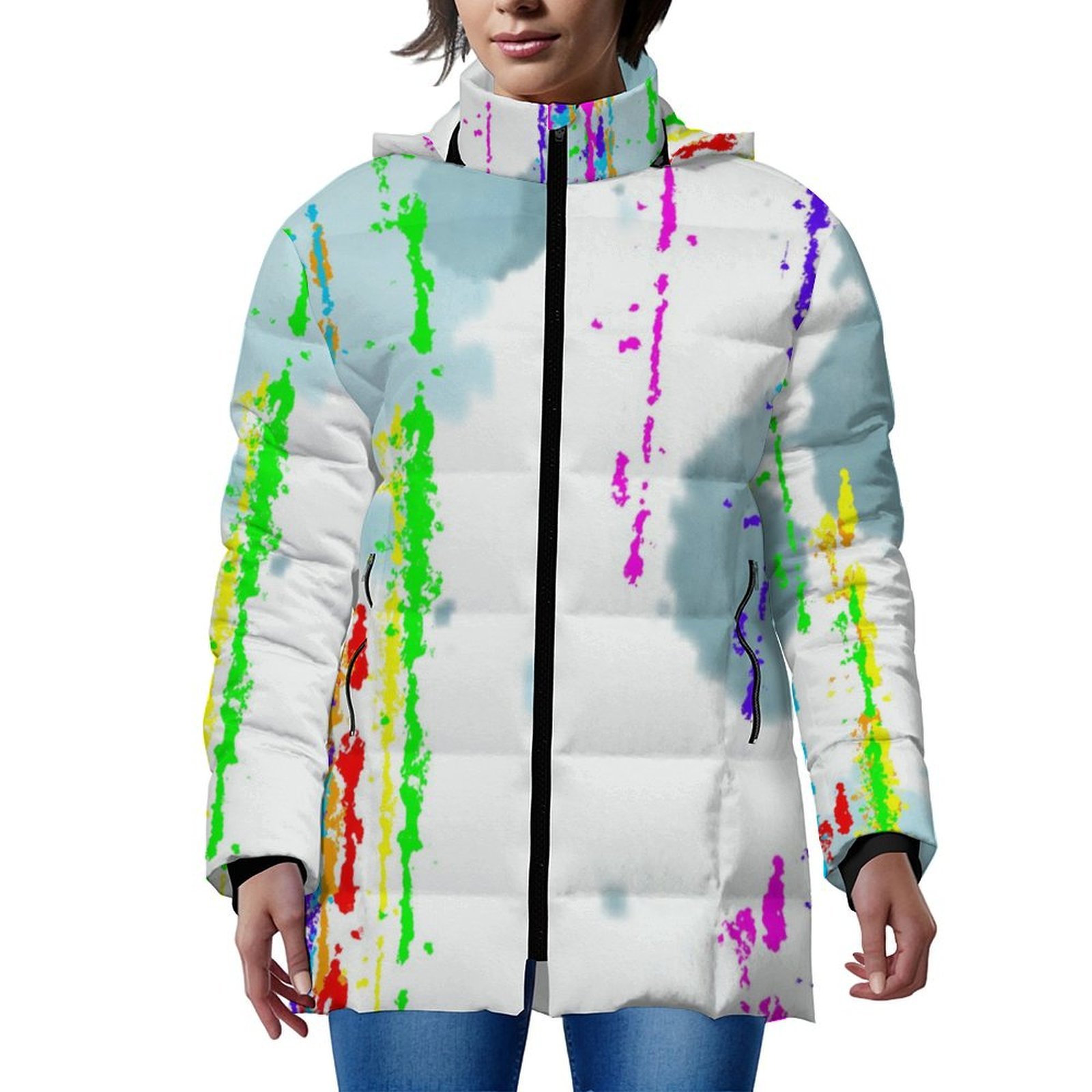 Preview: Warme Winterjacke mit Hundemotiv Alec – Popart Hundemotiv, 96% Polyester, 4% Spandex Unisex, bunt, Größe S-6XL, Schäferhund Mix