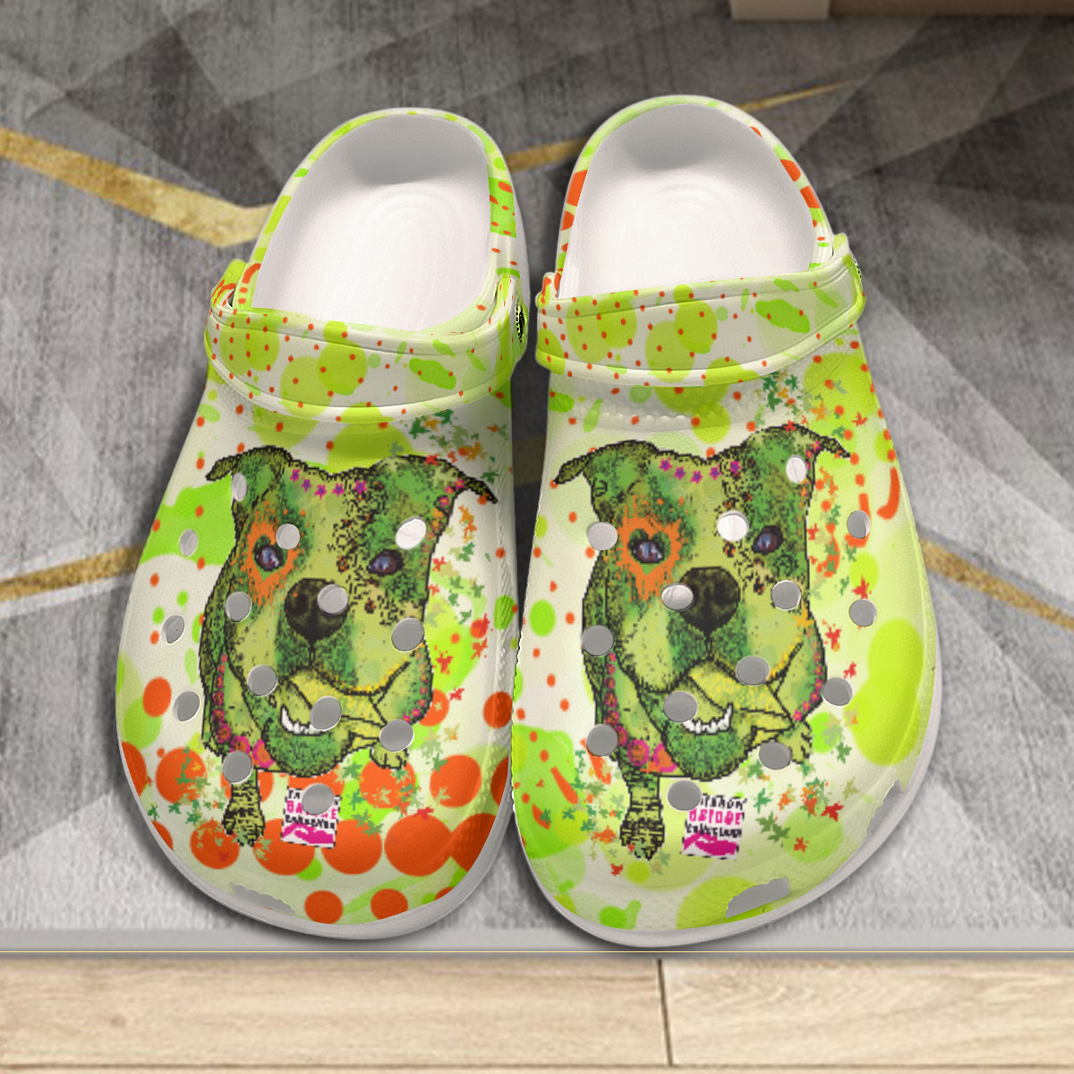 Clogs mit Hundemotiv Cindy - Gartenschuhe, Gummischuhe, bunt, Unisex, Grösse 36-43, Mischling, Mix, Englische Bulldogge, Bully