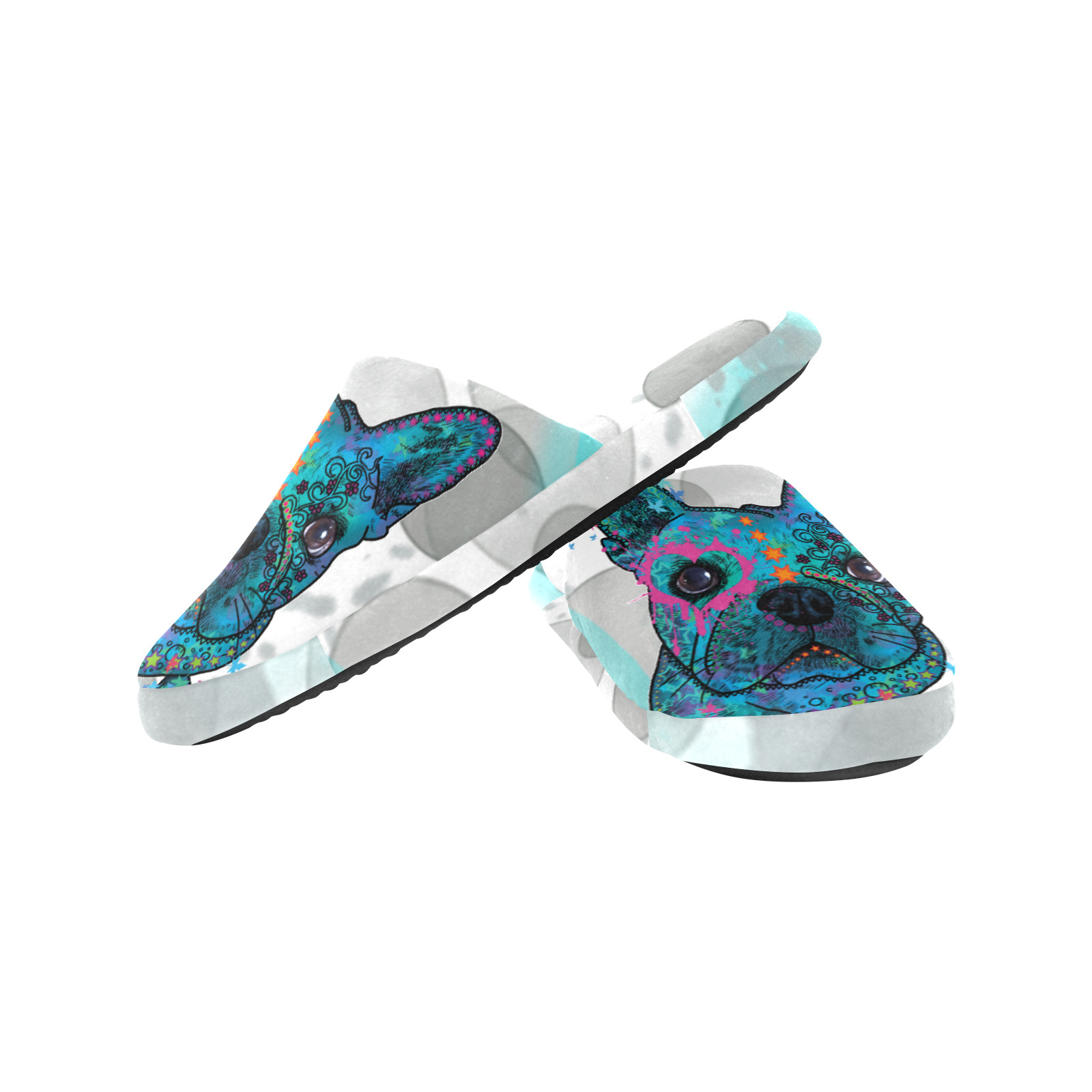 Hauspuschen Hundemotiv Elli - Hausschuhe, Pantoffeln, Unisex, Grösse 35-43, bunt, Mischling, Mix, Französische Bulldogge, Bully, Frenchi