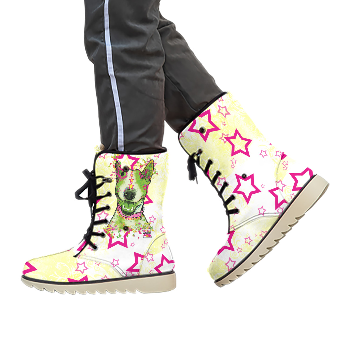 Winterboots mit Hundemotiv Bärbel - gefütterte Winterschuhe, Stiefel, bunt, Grösse 35-44, Mix, Mischling, Bullterrier, Bulli